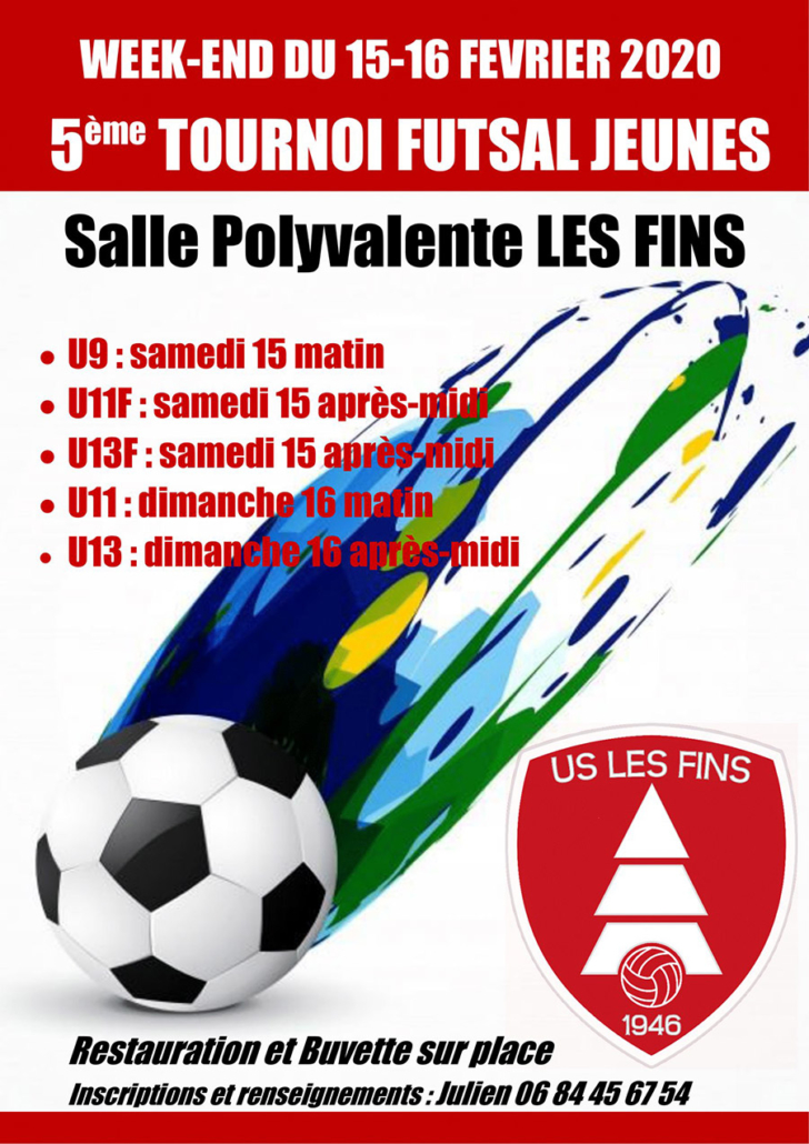 Voici tous les classements de notre super Tournoi Futsal Jeunes qui s’est déroulé dans une super ambiance tout le week-end à la Salle Polyvalente Victor Regnaud des Fins !