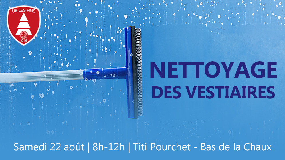 Si je me permets de te contacter aujourd’hui, c’est pour une raison très simple : savais-tu que 100% des vestiaires de l’US Les Fins ne sont pas prêts pour une nouvelle saison ? Nous n’avons pas encore entrepris leurs nettoyages mais ça y est, la date est tombée : samedi 22 août dès 8h, nous avons besoin de toi pour nettoyer, ranger, inventorier… au stade Titi Pourchet et au Bas de la Chaux.