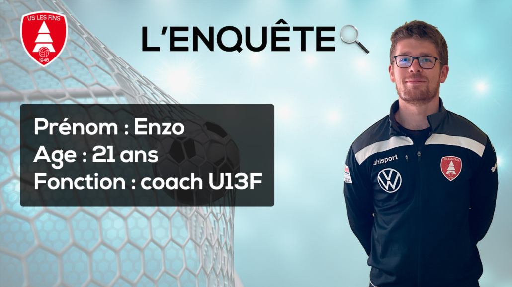 Je m’appelle Enzo Boillon, j’ai 21 ans. J’habite Les Fins. Je prépare un BPJEPS Sports Collectifs option foot, je suis en apprentissage au club. Je suis entraîneur des U13F depuis cette année mais je tourne aussi avec toutes les catégories. Je m’occupe de plusieurs tâches au sein du club : les entraînements, la préparation de séances, le nettoyage des vestiaires, le traçage du terrain ; il y a également une partie administrative (communication, préparation d’actions…).