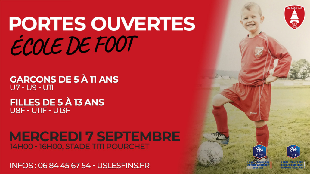 L’US Les Fins organise des Portes Ouvertes de l’école de foot mercredi 7 septembre à partir de 14h.